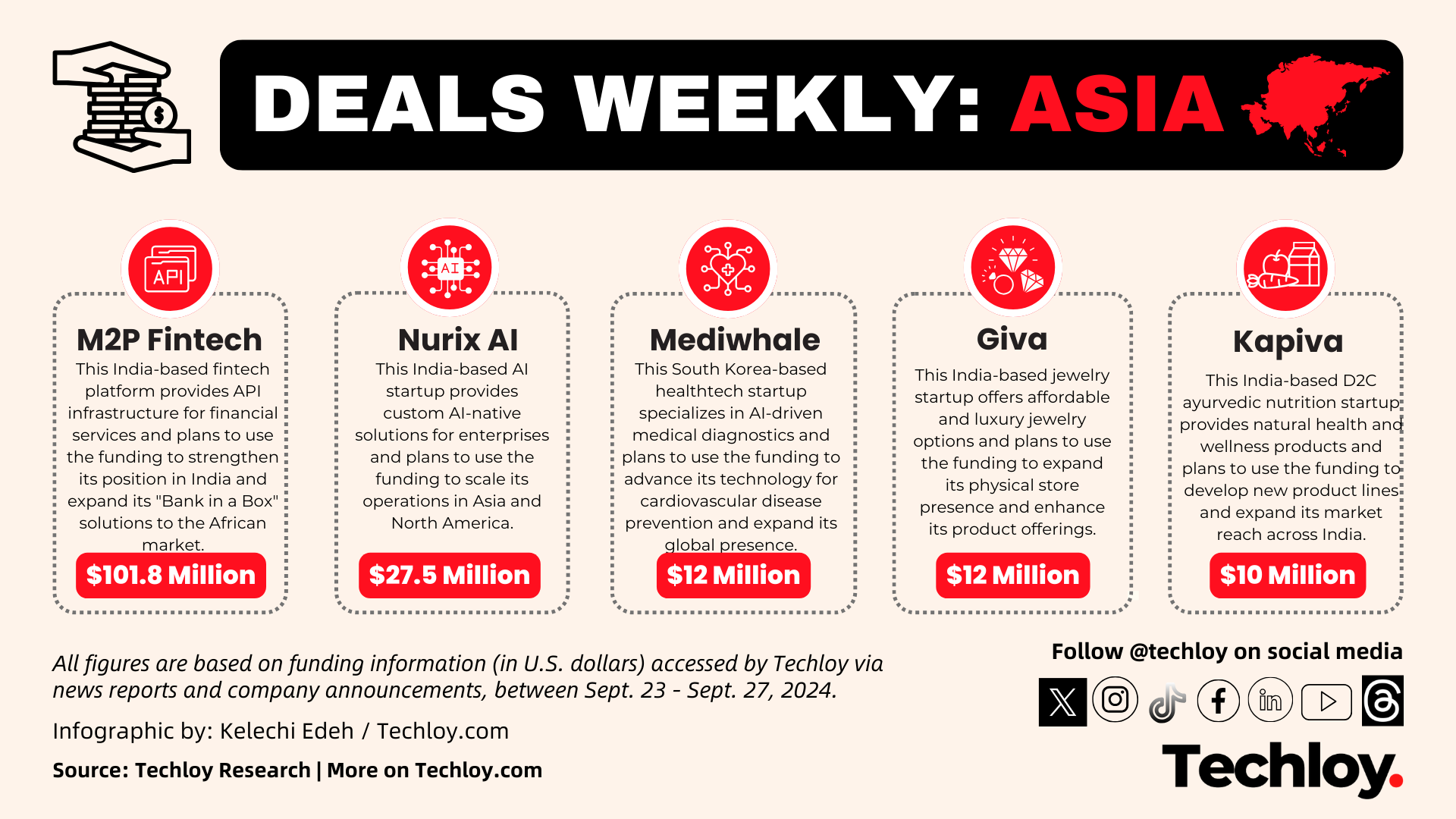 These are the funding deals we tracked in the Asian region this week – featuring M2P Fintech, Nurix AI, Mediwhale, Giva, and Kapiva.