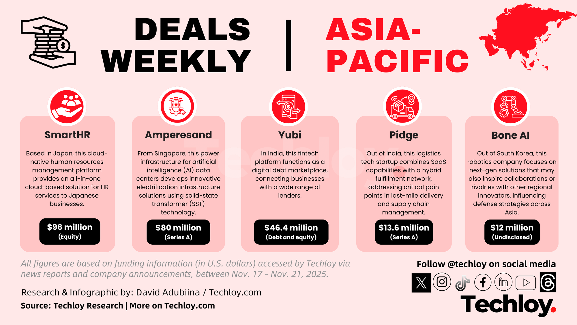 India followed with a busy mix of fintech and logistics activity that kept the regional momentum going. Yubi secured the equivalent of $46.4 million through long-term debt from EvolutionX Debt Capital and fresh equity from its own CEO, supporting expansion into Southeast Asia and the US. In logistics, Pidge raised $13.6 million in a round led by Spain’s LVEC to push its global ambitions while deepening its presence in India’s Tier II and III cities. Agraga added another piece to the puzzle with an $11.3 million pre-Series B round led by IvyCap Ventures to grow its footprint, upgrade its tech, and strengthen its end-to-end logistics offering.
