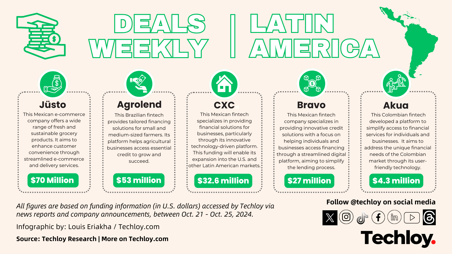 - Mexican online grocer Jüsto secures $70 million to fuel growth primarily in Mexico.