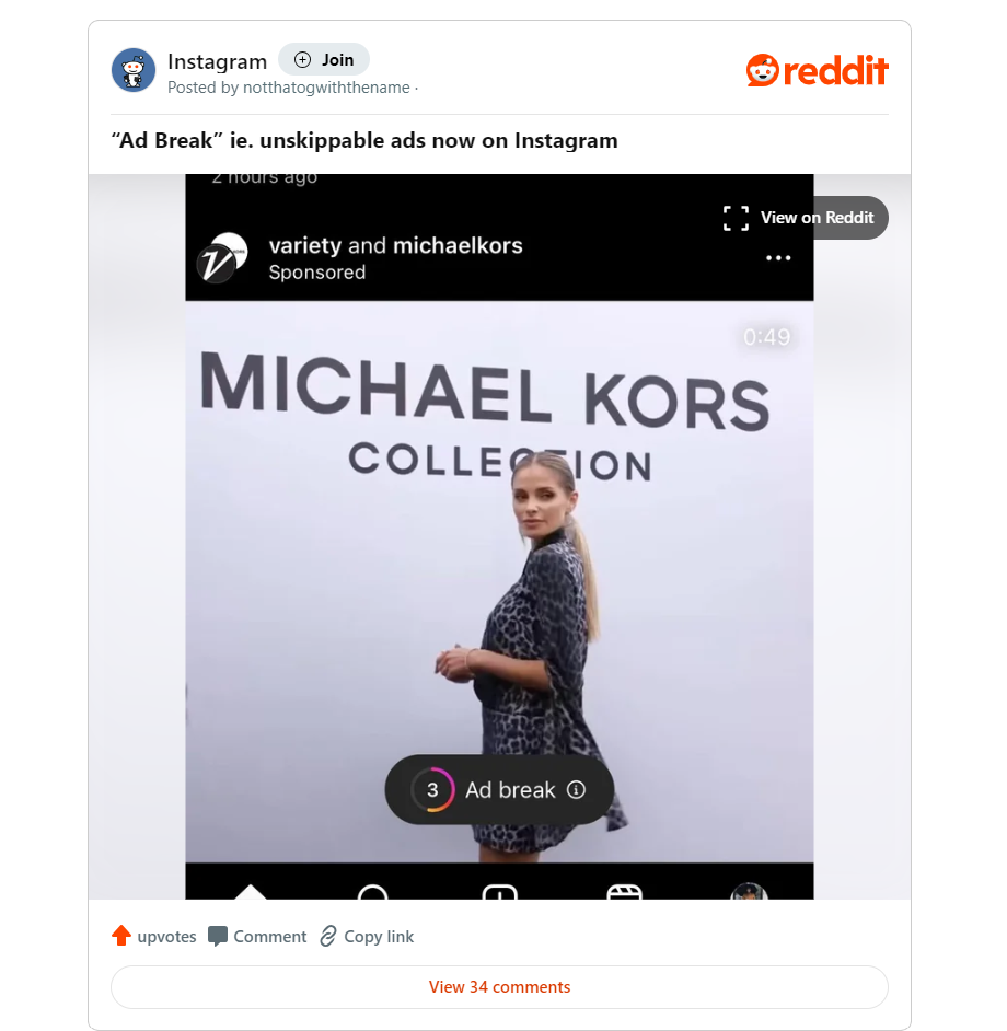 Right now, it seems like Meta is only testing the feature in beta with some select Instagram users. However, should it roll out the feature to the public and make it permanent, it will join the likes of YouTube, which shows unskippable ads before and during videos and unskippable, 30-second commercials on its TV app.