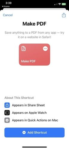 With the Make PDF shortcut, you can convert almost anything into a PDF format, such as an image from your Photos app, a note from your Notes app, or even a webpage from Safari.