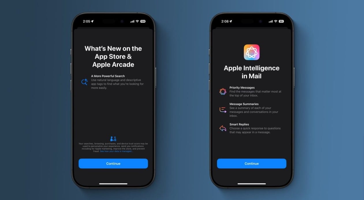 To ease users into these tools, Apple has also added splash screens in apps like Mail and the App Store, showcasing the new Apple Intelligence functionalities.