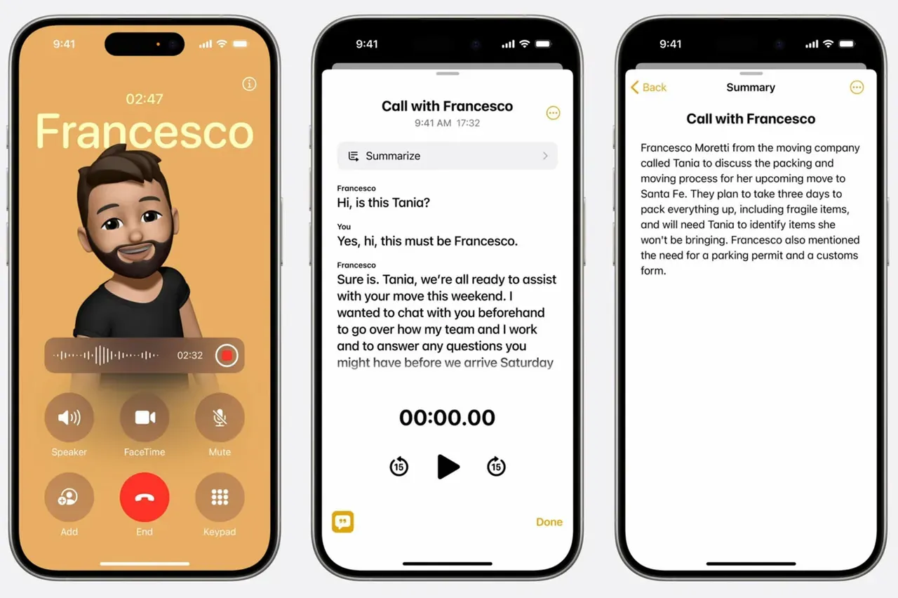 The best part about the feature is the automatic transcription. With this, you can easily skim through the transcript of the call to review your conversations, or even ask Apple Intelligence to summarize the entire conversation. The tool uses the on-device Neural Engine, ensuring personal data isn’t processed in Apple or third-party clouds.