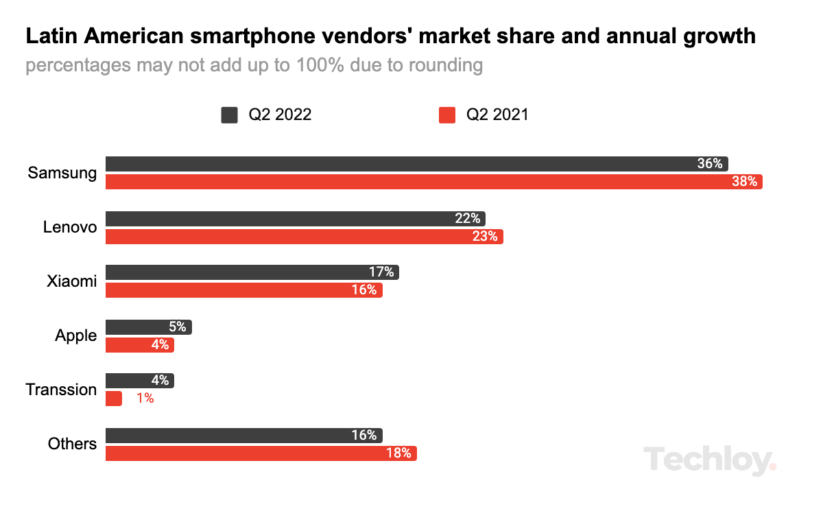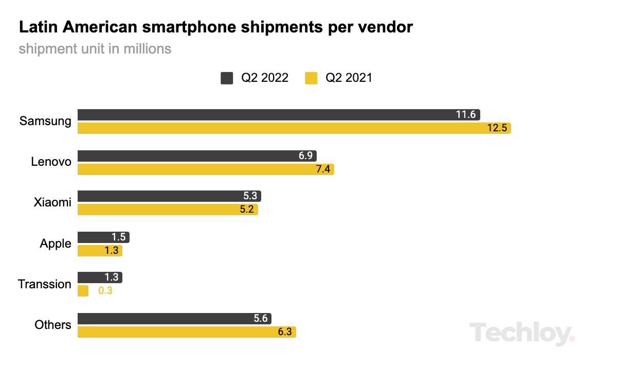 / Insights Mobile Tech in Latin America Latin America smartphone shipments fell by 2.5% YoY ahead of global shipments' 9% decline in Q2 2022 by Emmanuel Oyedeji Updated November 30, 2022 Link copied! Copy failed! Photo by Đức Trịnh / Unsplash Smartphone shipments in Latin America fell 2.5% year on year in the second quarter of 2022, following a 2.5% drop in the first quarter, making it the first two consecutive declines in the region since the beginning of the pandemic in Q1 and Q2 2020. by Emmanuel Oyedeji Updated November 30, 2022 Link copied! Copy failed!