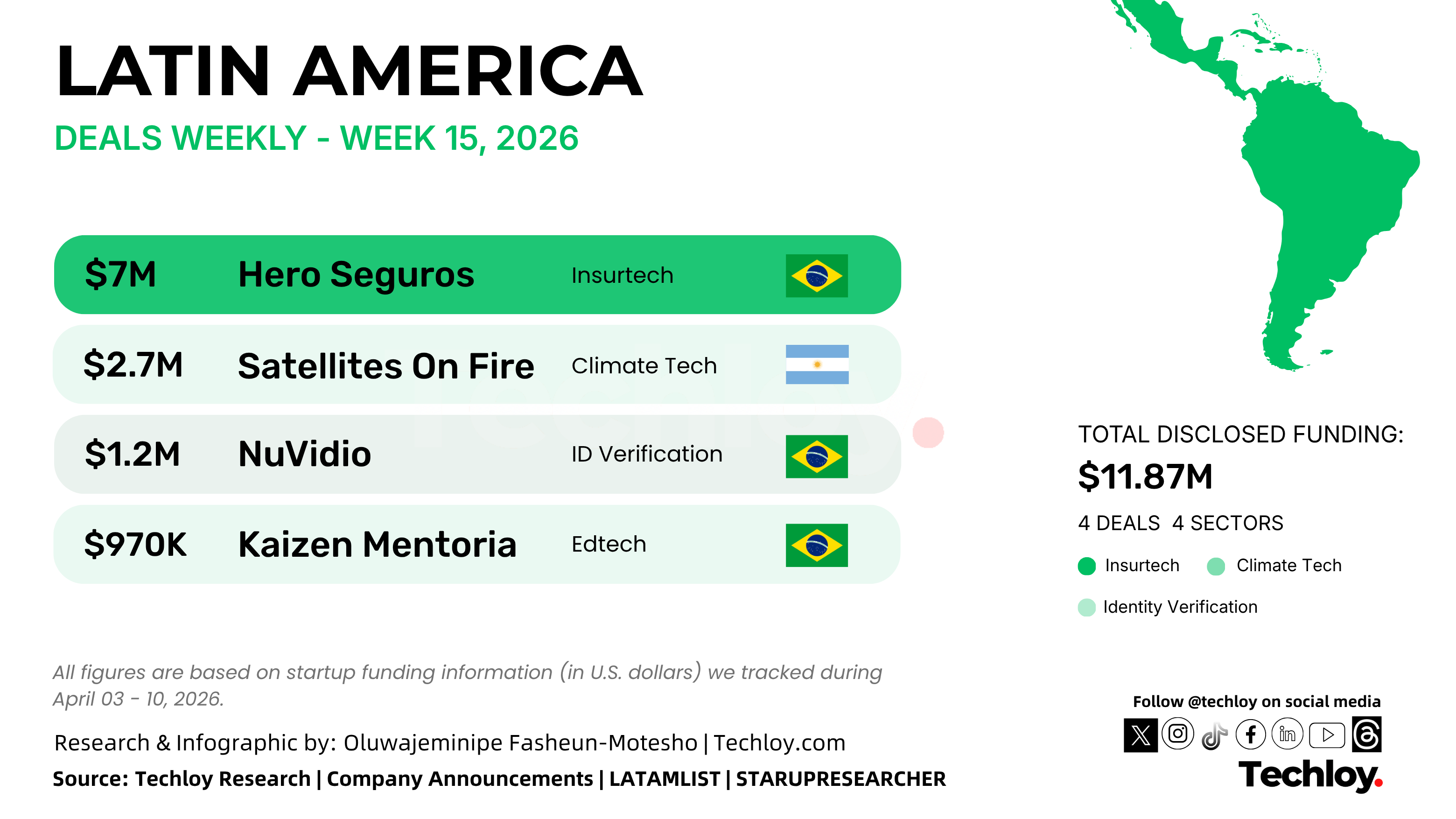 This week’s funding rounds reflect continued investor interest in insurance infrastructure, climate resilience, digital identity, and education platforms, with Brazil remaining the region’s most active market.