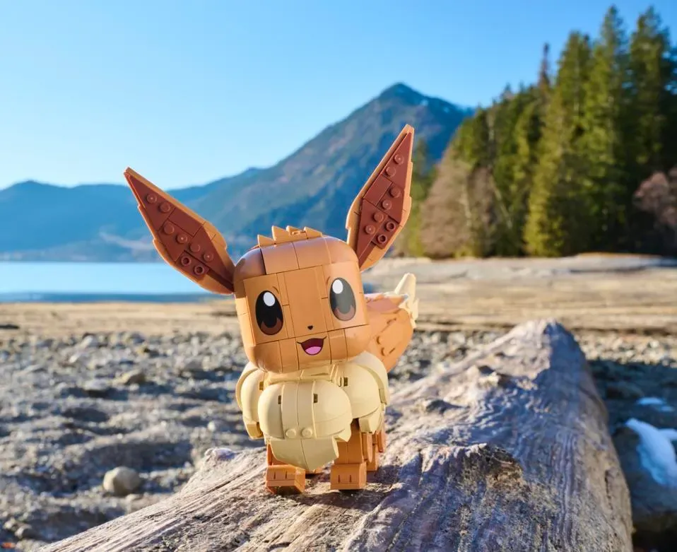 Eevee is the smallest set in the lineup, but it might be the most charming. This build places Eevee on a peaceful coastal scene, sitting on a log with trees, hills, and distant mountains behind it. The designers also nailed Eevee’s signature expression: that innocent, slightly empty smile that somehow makes the Pokémon even more lovable.