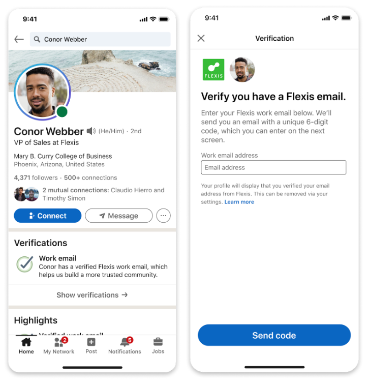 These new verification features are designed to increase the confidence of both members and organizations in their collaborations on the platform, ensuring that their connections are genuine and that the information provided on their profiles is accurate.