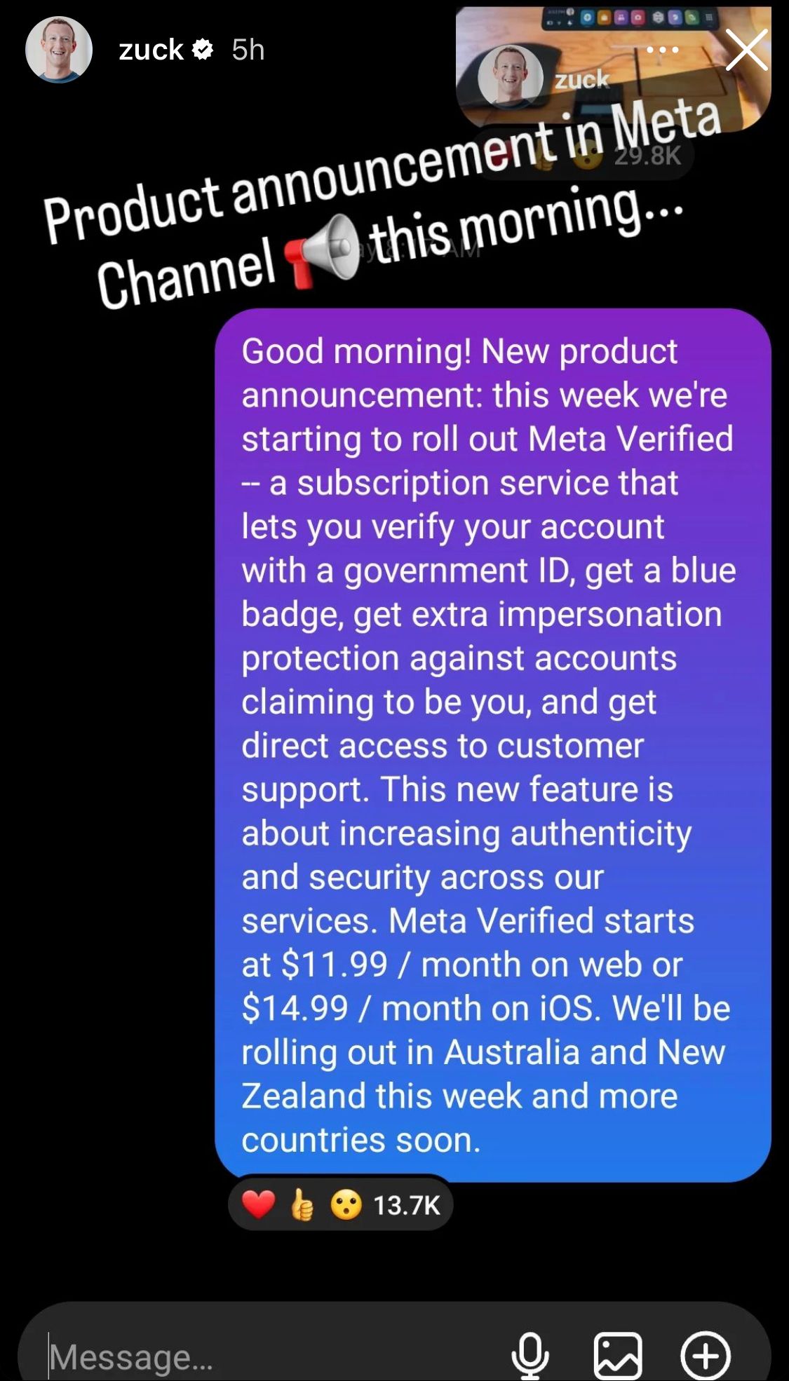 According to CEO, Mark Zuckerberg, Meta Verified will be introduced in Australia and New Zealand this week, and more countries will follow.