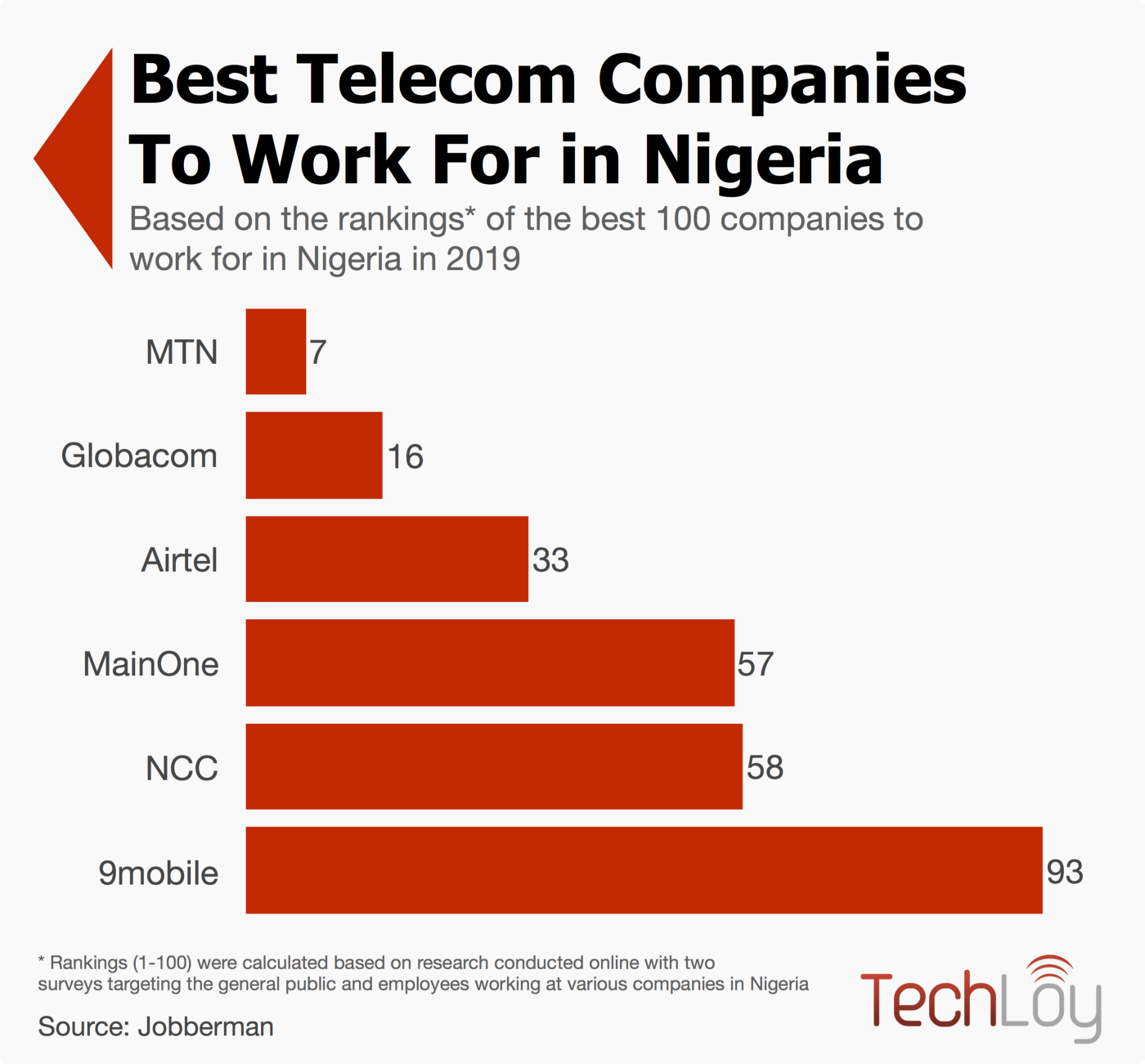 In this Techloy infographic, we take a look at the best telecom companies to work for in Nigeria in 2020, according to Jobberman.