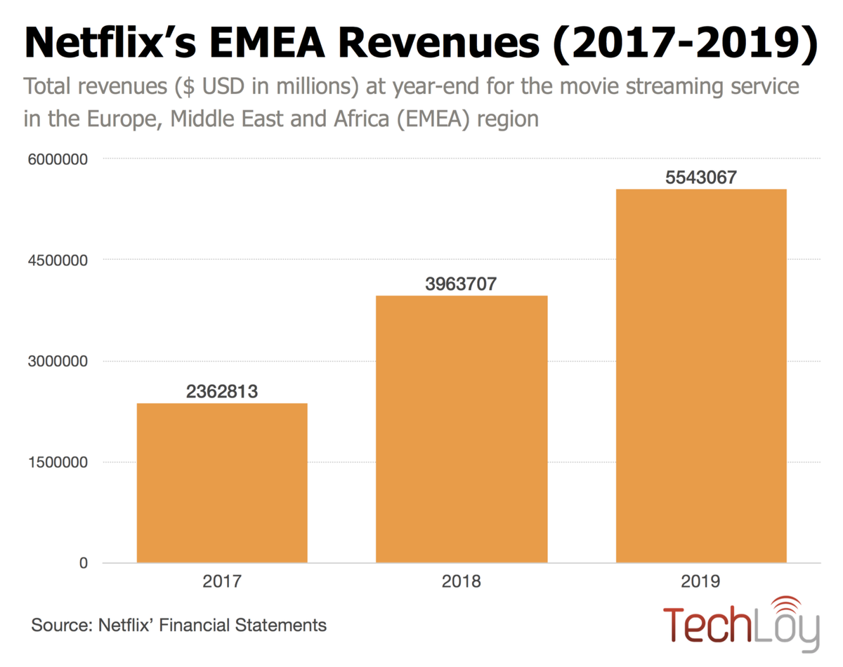 Netflix’s revenues for 2019 reached $5.5 billion in EMEA region