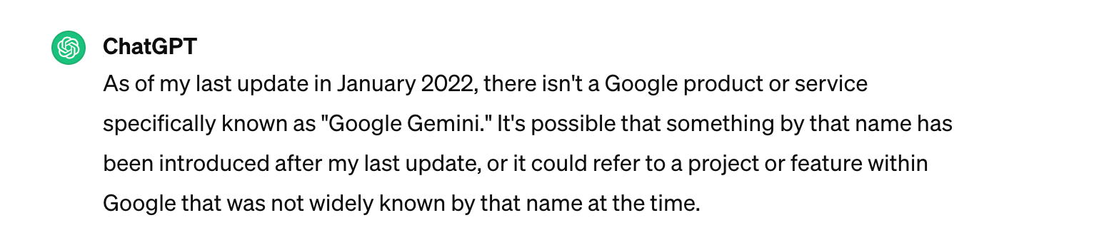 While it is still early days, I think that Google Gemini is very up-to-date, accurate, and more interesting as an AI assistant. A quick prompt on Gemini for 'what is gemini' produced a very concise and personal response, whereas, ChatGPT gave a long description in the third person when I asked 'what is chatgpt' – which had me rolling my eyes. 🙄