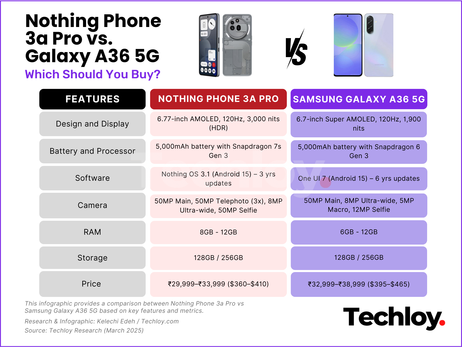 If you’re shopping for a stylish, future-ready mid-ranger in 2025, two phones are probably dominating your shortlist—the flashy new Nothing Phone 3a Pro and the ever-reliable Samsung Galaxy A36 5G.