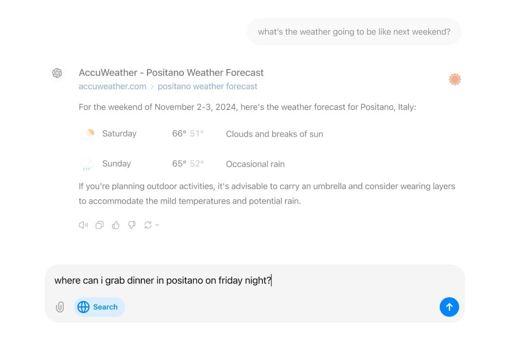 Users can also refine searches with follow-up questions, illustrating what OpenAI calls ChatGPT Search’s personalized, context-aware interactions that will likely set it apart from traditional search tools.