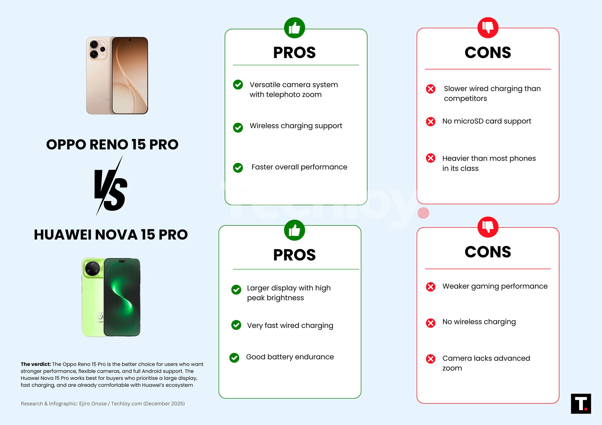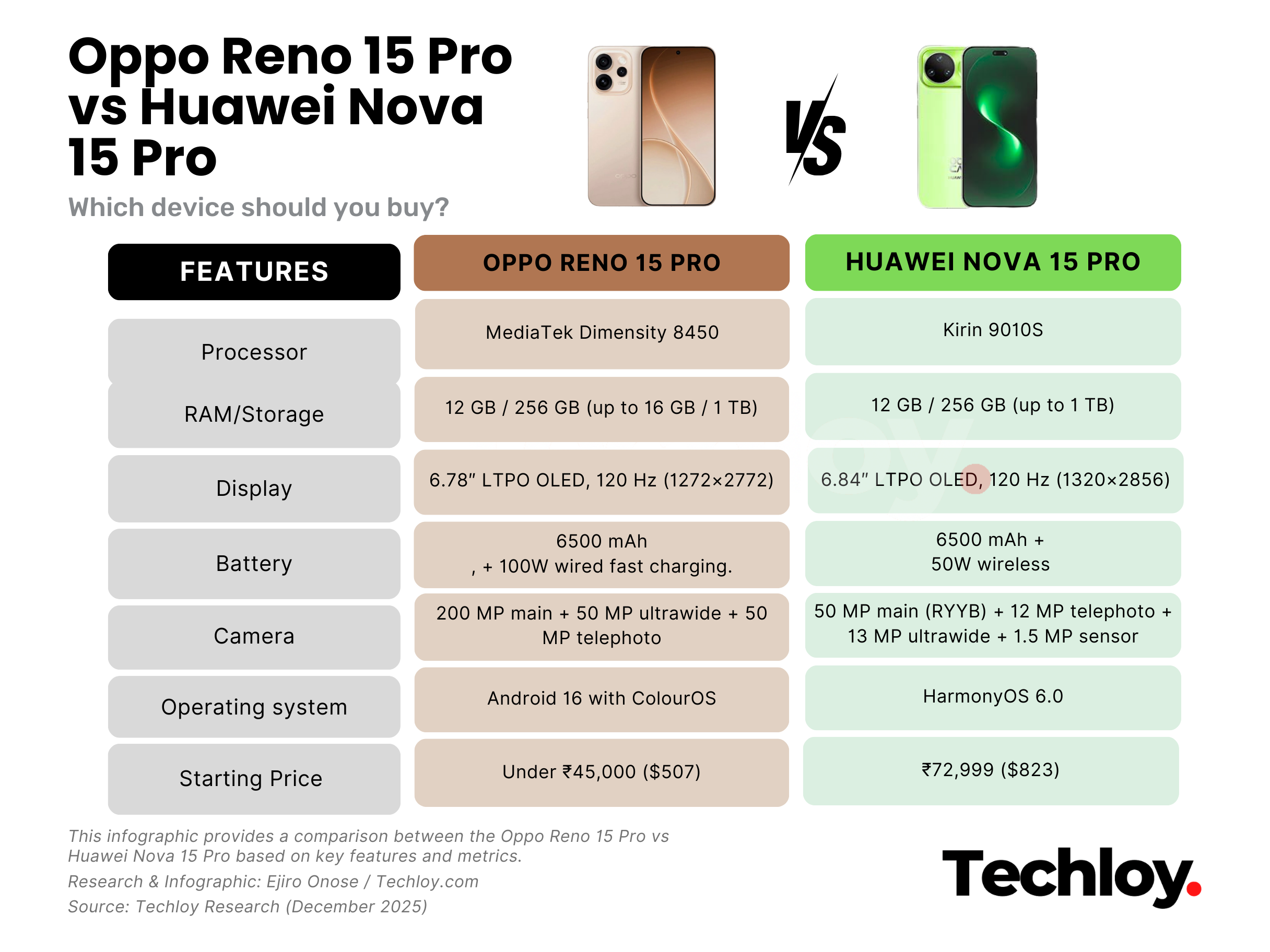 Buying a phone is serious business because it's about choosing the device that'll hold your digital life together for the next few months or years. So when Oppo Reno 15 Pro and the Huawei Nova 15 Pro were released this month, I had to look past the marketing hype to see how they really compare.