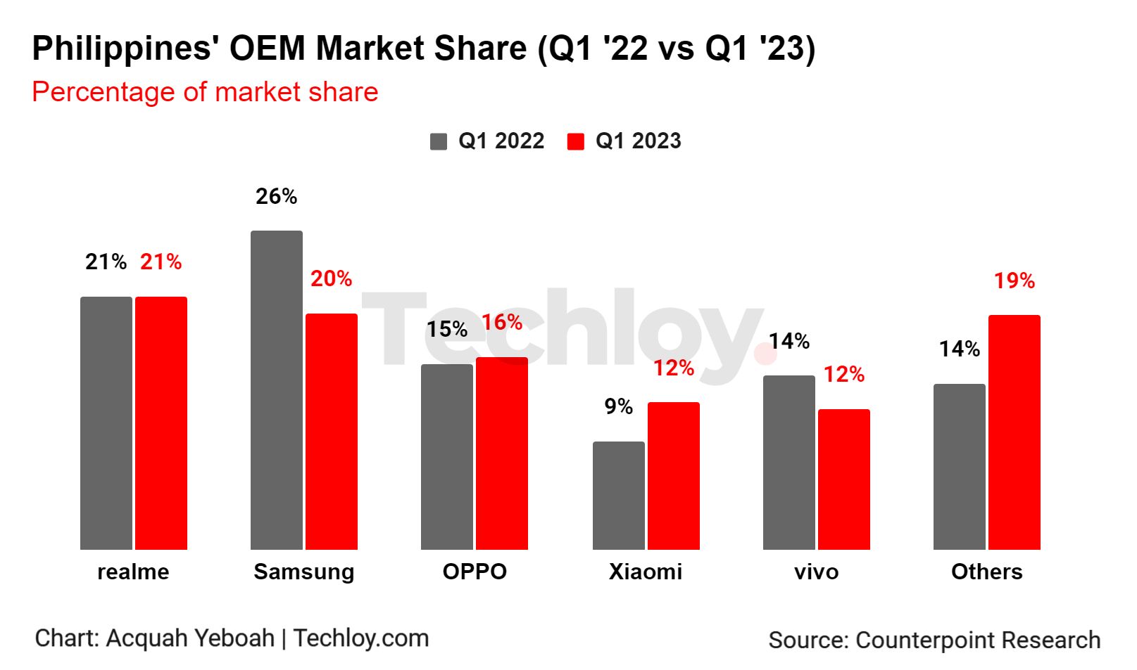 Smartphone shipments in the Philippines witnessed a 9% year-over-year decline in Q1 2023, according to Counterpoint Research.