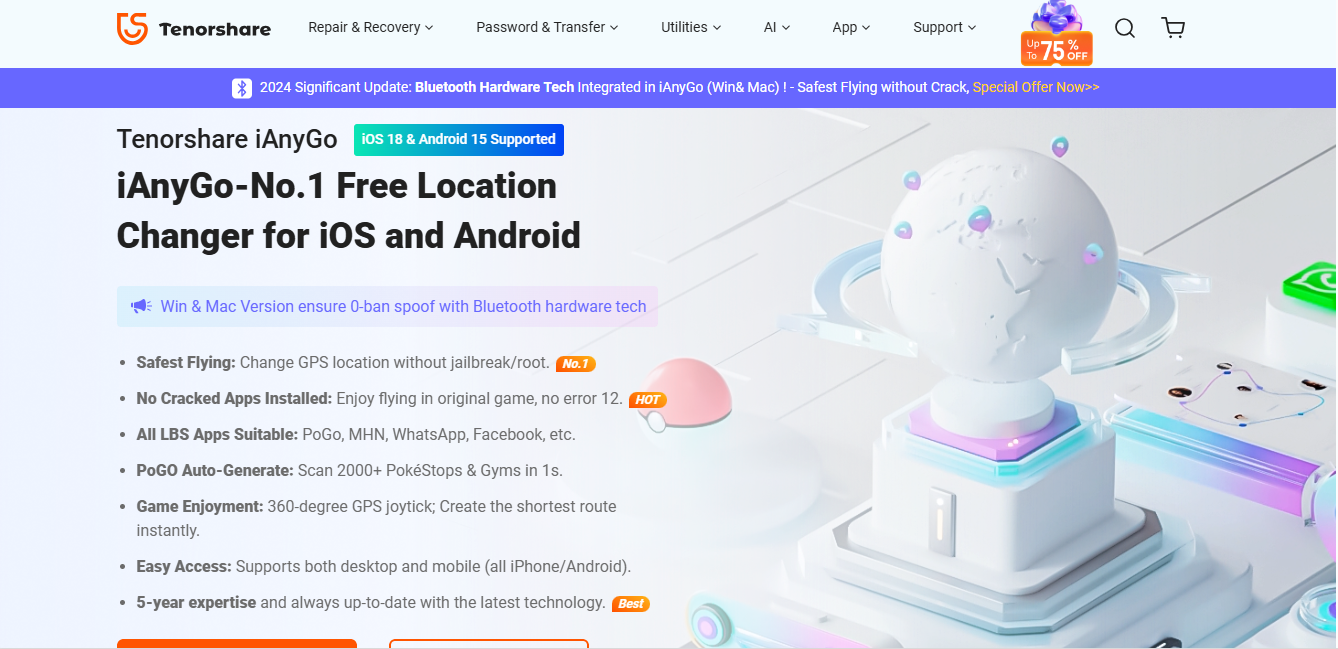 Go to one of the best spooning tool, the official Tenorshare iAnyGo.