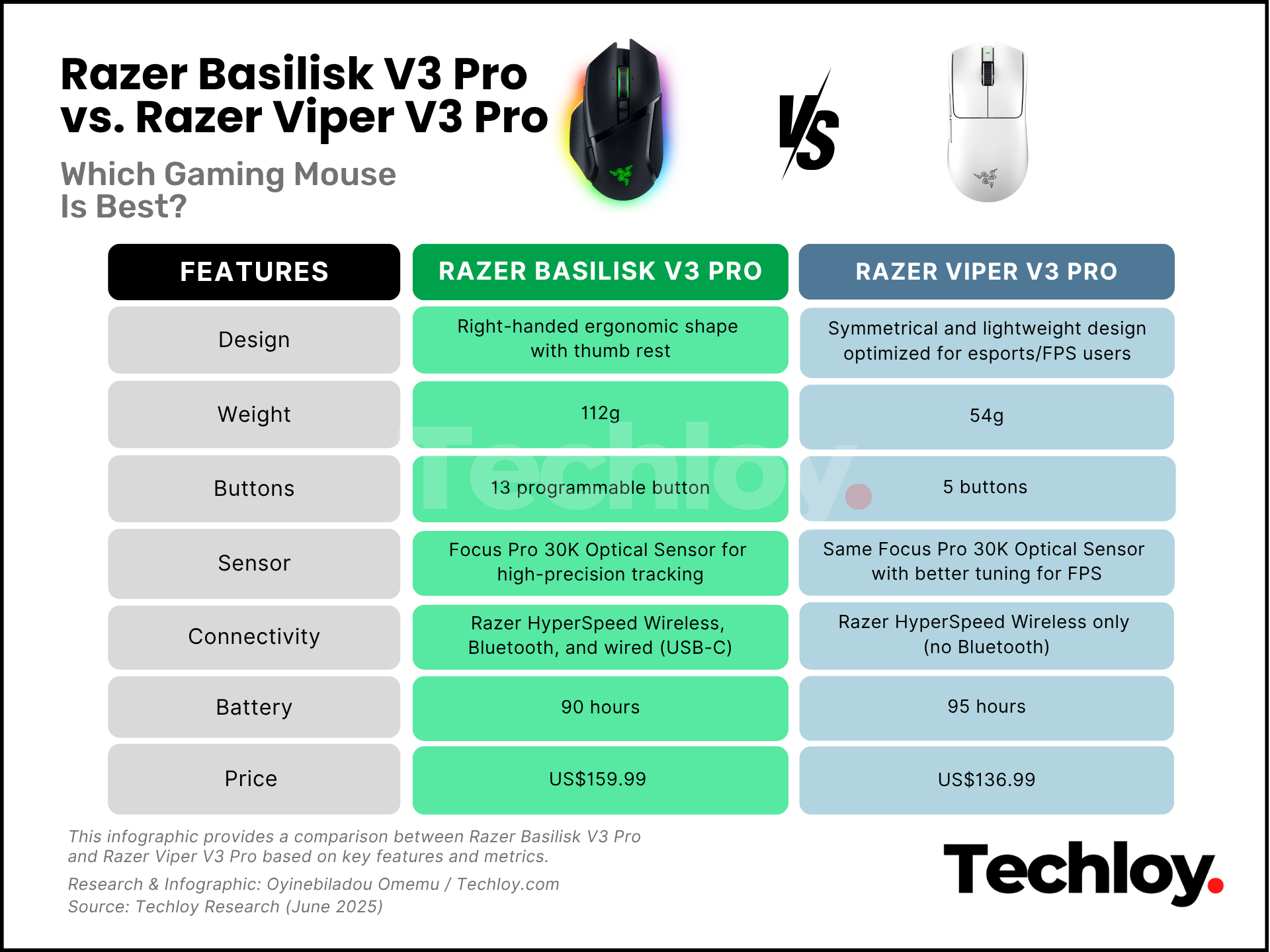 Picking the right gaming mouse is essential because it's a virtual battle you're going to be in, and you want the best weapon. This brings the confusion of which mouse to go with: the Razer Basilisk V3 Pro or the Viper V3 Pro?