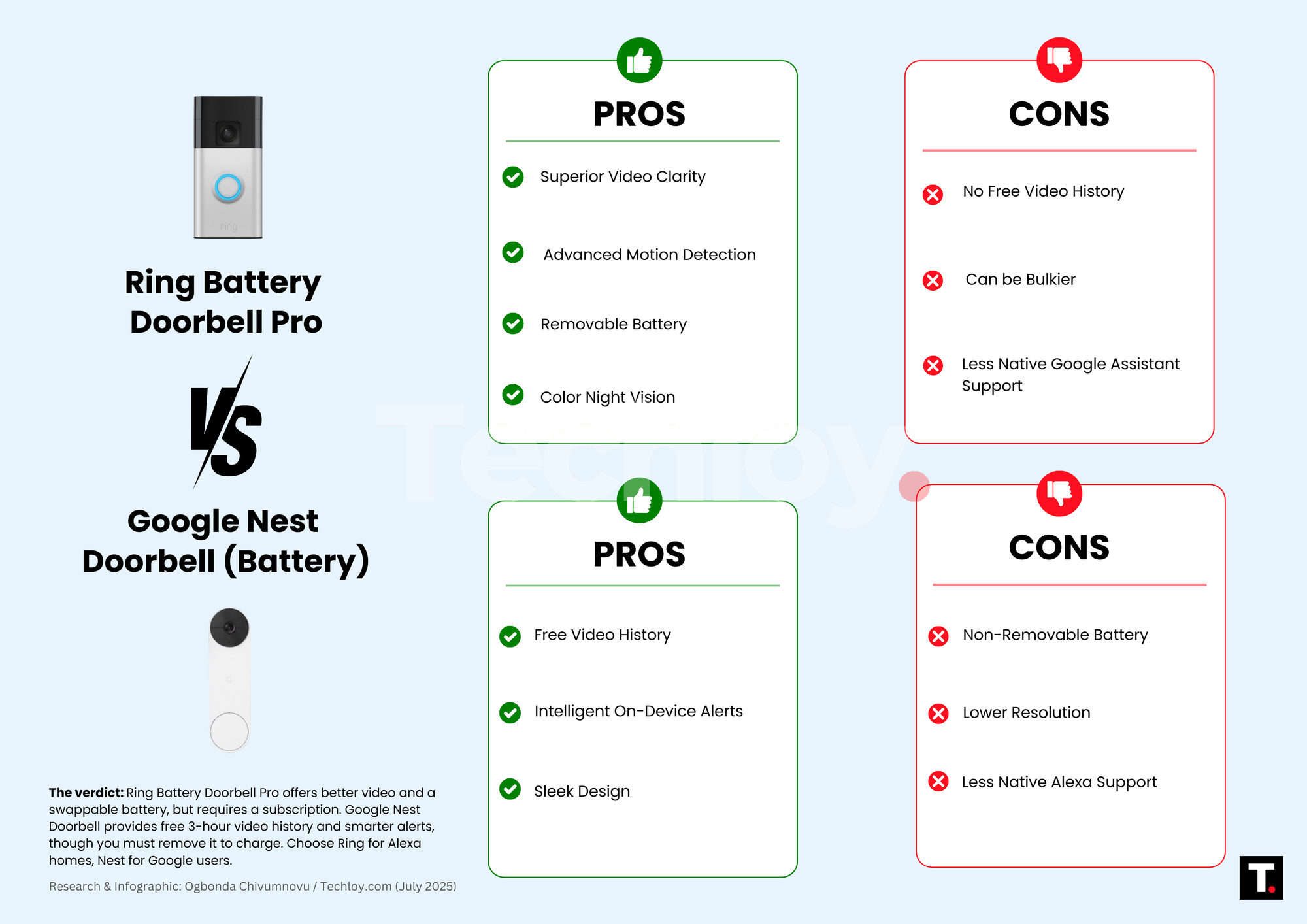 Prefer Google Assistant, smarter alerts, and some free video history? The Nest Doorbell (Battery) fits better, especially with its sleek design and AI features. Both are solid options; the best one depends on your smart home setup and priorities.