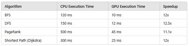 - Small Graphs: The benefits of GPU acceleration are more pronounced for large graphs with high connectivity.