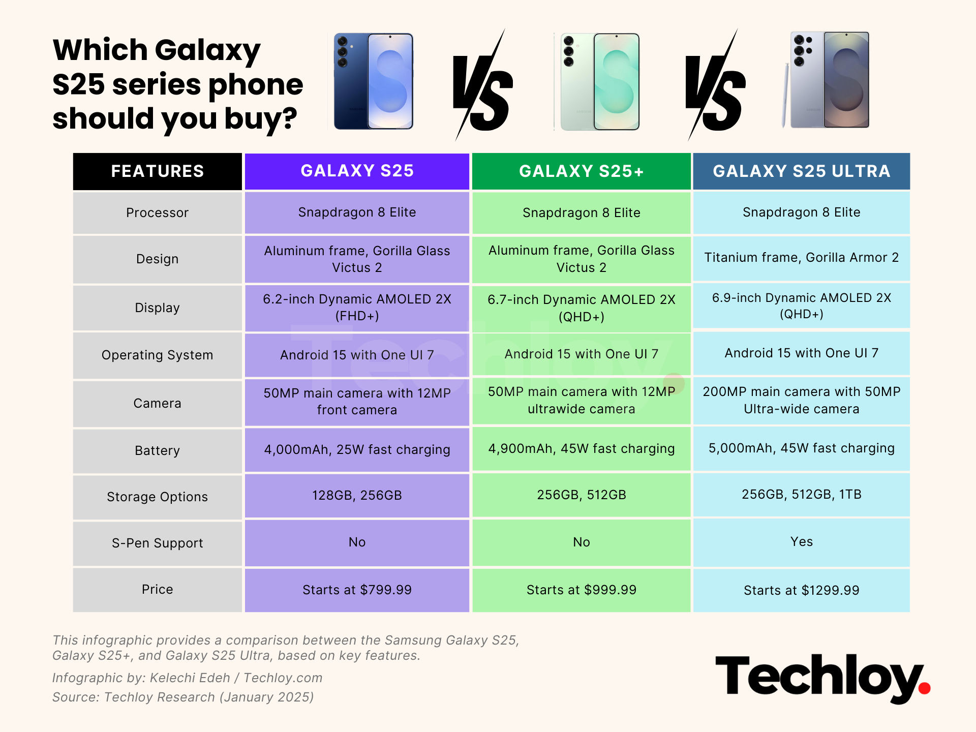 You should get the Galaxy S25 if you want a compact flagship and don’t need the extras. Choose the S25+ for the best balance of price, features, and performance. But go for the S25 Ultra if photography and premium design are your top priorities.