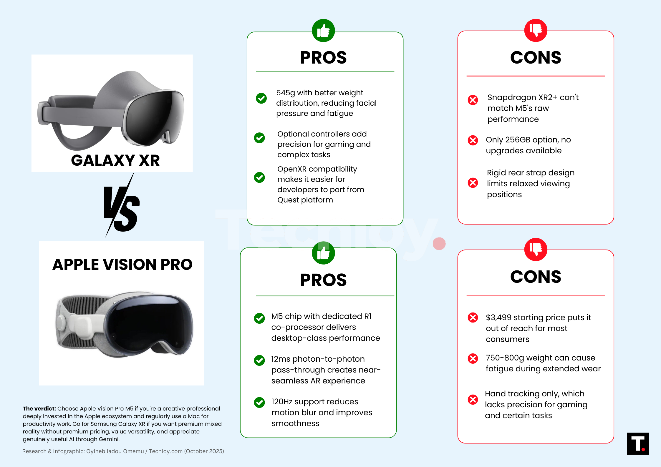 Both the Galaxy XR and Apple Vision Pro represent remarkable achievements in spatial computing, but they follow distinctly different approaches. Apple's Vision Pro offers the superior build quality, more powerful silicon, and that ineffable Apple polish, at a price that puts it out of reach for most people. It's the better choice if you're deeply embedded in Apple's ecosystem, use a Mac daily for creative work, and money isn't a primary concern.