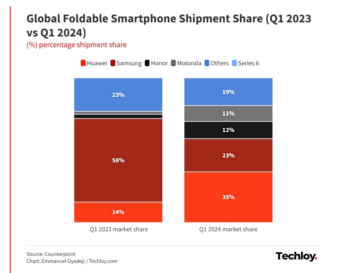 This enhancement arrives at a crucial moment: after years of dominance, Samsung’s grip on the foldable market is now challenged. In Q1 2024, Huawei overtook Samsung in foldable shipments, thanks to popular 5G models like the Mate X5 and Pocket 2, which captured significant demand in China.