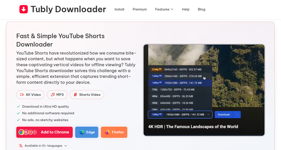 Tubly Downloader is a browser extension designed to make saving YouTube Shorts effortless. It adds a small Download button right under the video, allowing you to save Shorts in MP4 or MP3 format. It is fast, ad-free, and works smoothly across major browsers and devices, giving you a quick and reliable way to keep your favorite clips offline anytime you want.
