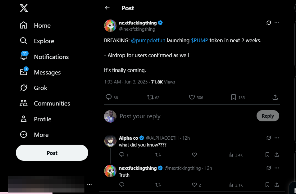 So far, the team behind Pump.fun hasn’t made any official statements about the raise. Still, conversations in the X space speculate that the token will be launched in the next two weeks, followed by an airdrop for users.