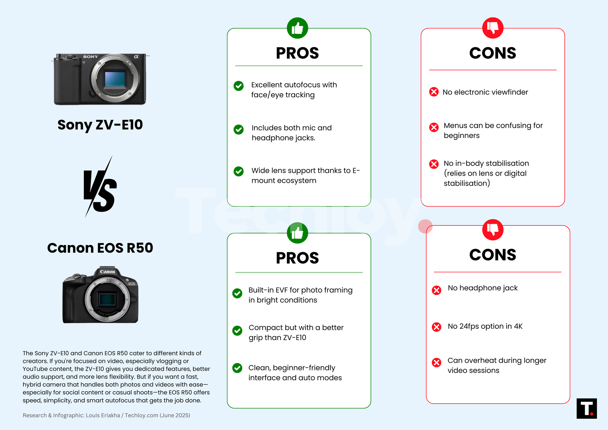 There’s no wrong choice between the Sony ZV-E10 and the Canon EOS R50—just the right fit for your creative style.