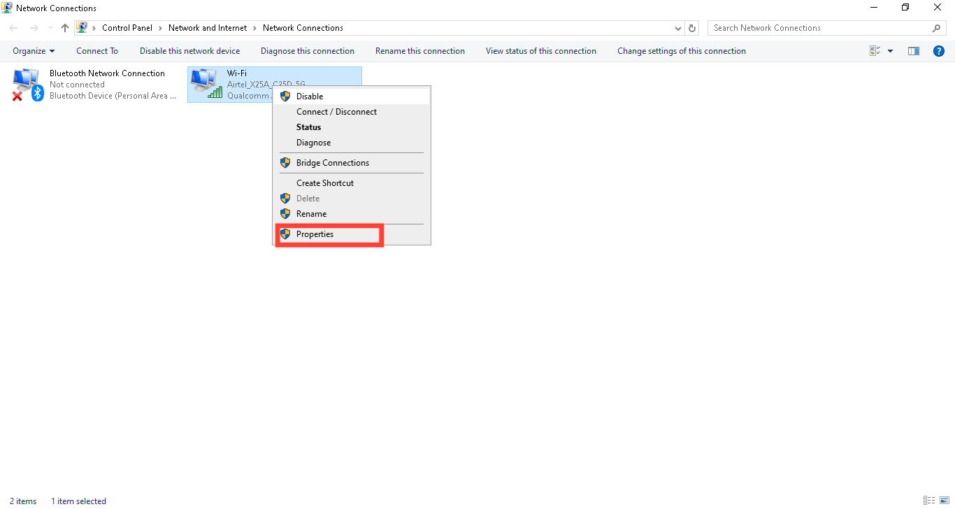 Step 2. Right-click on your WiFi LAN and select "Properties."