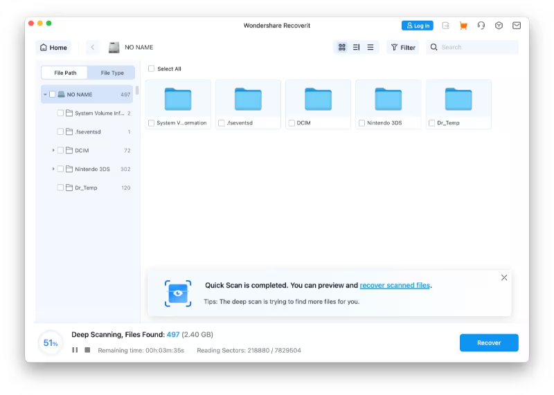 Performing a free SD card recovery on Mac is super simple with Recoverit. Here is how you can restore deleted or lost files from your memory card within minutes.