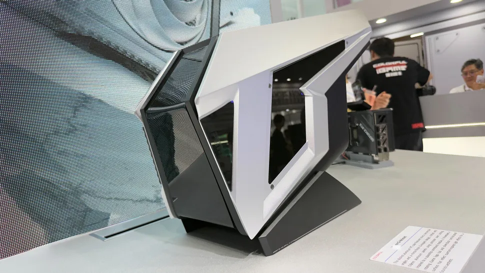 While it is possible to imagine a mini PC in a box design, it feels out of the box, making it look like a projector. One PC at Computex took that design cue and ran with it. From the outside, it could pass for a projector, with a body that swivels and rotates like one, too.