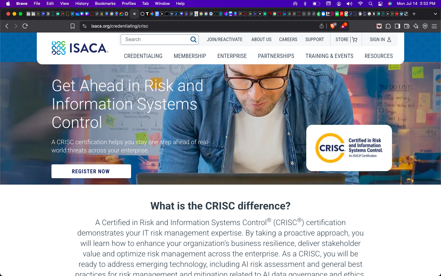 Yet another ISACA certification, CRISC deals with the identification and avoidance of IT and business risk through the implementation of information system controls.