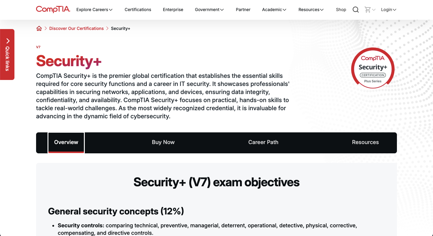 This entry-level cert addresses fundamental cybersecurity topics, from threats and vulnerabilities to identity management.