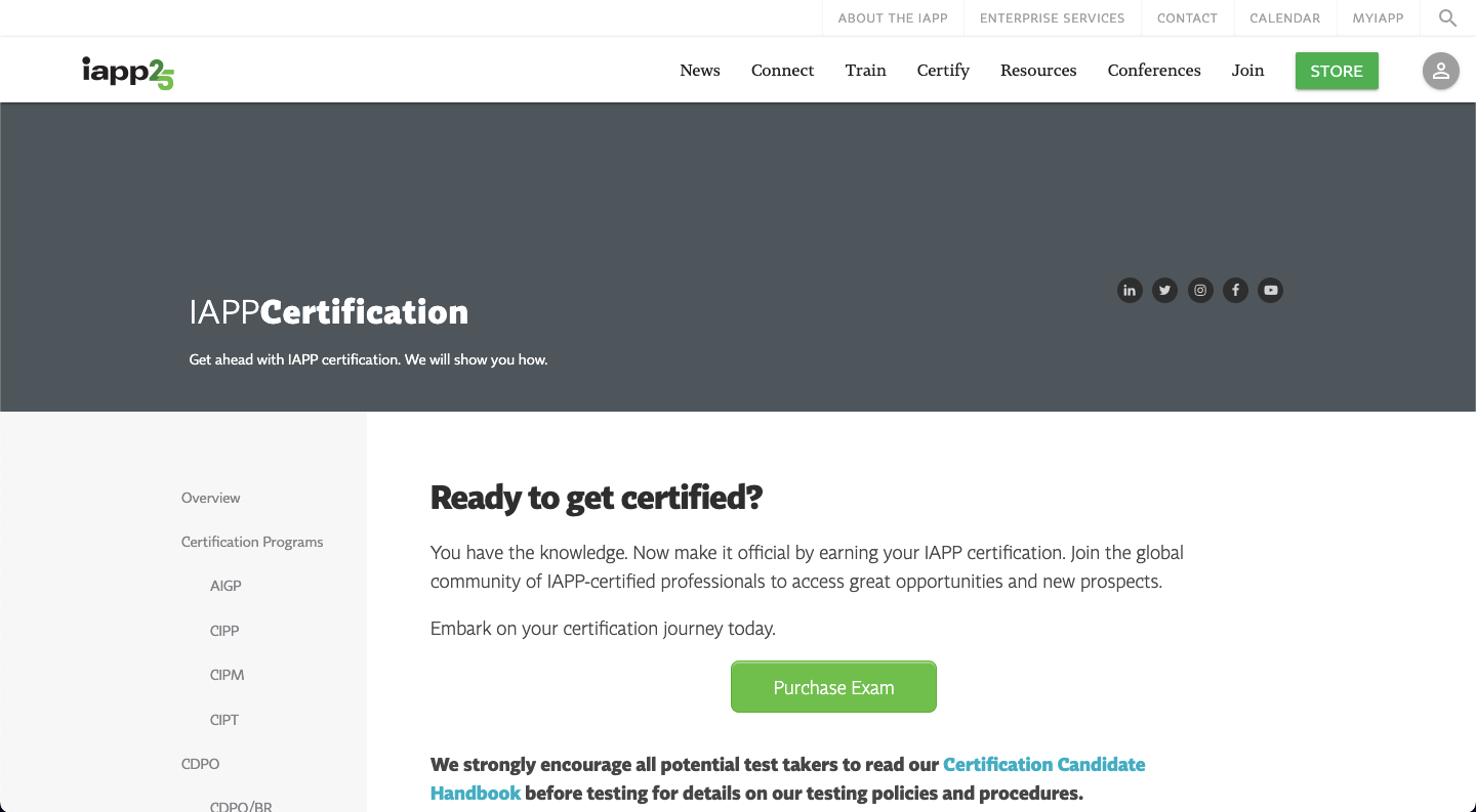 International Association of Privacy Professionals (IAPP) provides the certification of CIPP, which is focused on laws, regulations, and frameworks of privacy. You have the option to follow a region-based path, like CIPP/US (United States) or CIPP/E (Europe), depending on your industry focus.