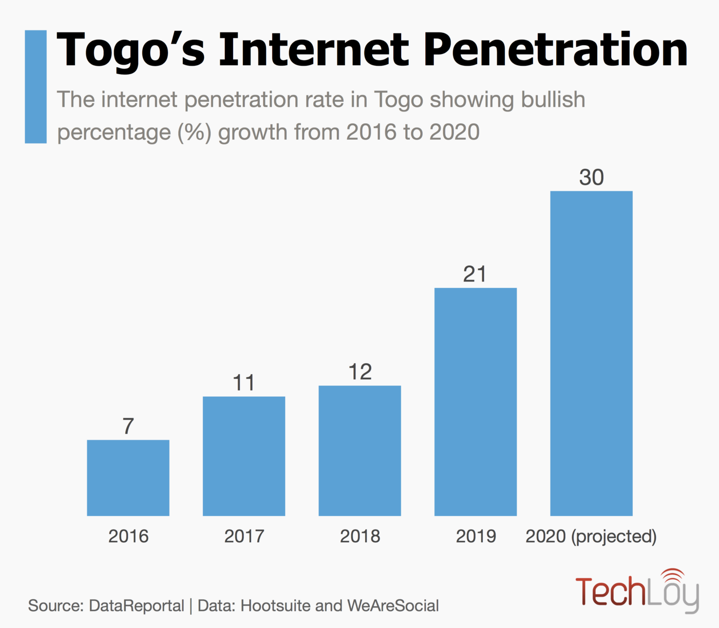 Techloy further projects that Togo’s internet penetration would reach about 30% by the end of 2020, based on its average annual growth rate over the past five years.