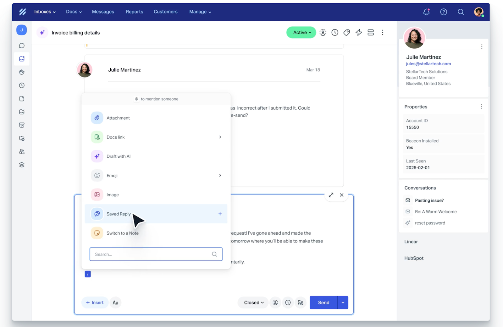 HelpScout is an AI customer service software widely used in 2025 by small and midsize businesses, known for its shared inbox workflows and straightforward email-first design. The platform integrates email, live chat, and a knowledge base under one interface, while its HelpScout’s AI suite automates up to 70% of routine tasks using the company’s Docs content, improving customer service while reducing manual workload.