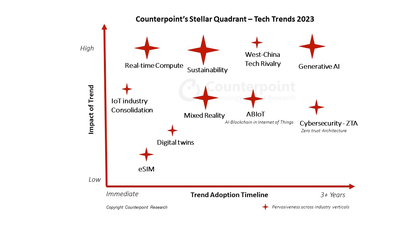 AI, digital twins, and real-time computing emerged at the top of the highlighted trends that will influence these technological developments and adoption in 2023. This is based on research by the market intelligence group Counterpoint about innovations that are at their inflection point in the new year.