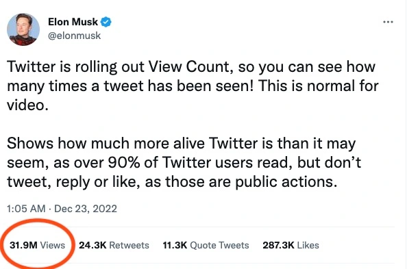 "Twitter is rolling out View Count, so you can see how many times a tweet has been seen! This is normal for video," says Musk in a tweet. "Shows how much more alive Twitter is than it may seem, as over 90% of Twitter users read, but don’t tweet, reply or like, as those are public actions," he added.