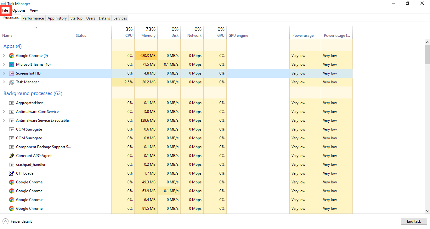 Step 1. Press Ctrl + Shift + Esc to open Task Manager and click on the "File" tab.