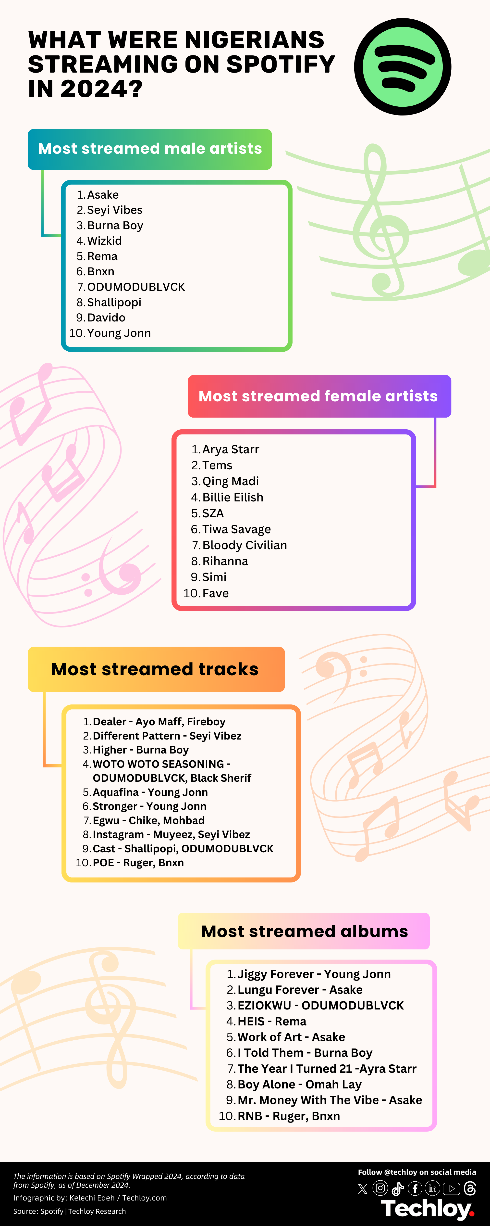Rising stars made waves too, with Ayo Maff’s "Dealer" and Muyeez’s "Instagram" breaking into the most-streamed tracks list.