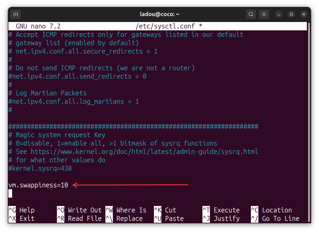 sudo nano /etc/sysctl.conf