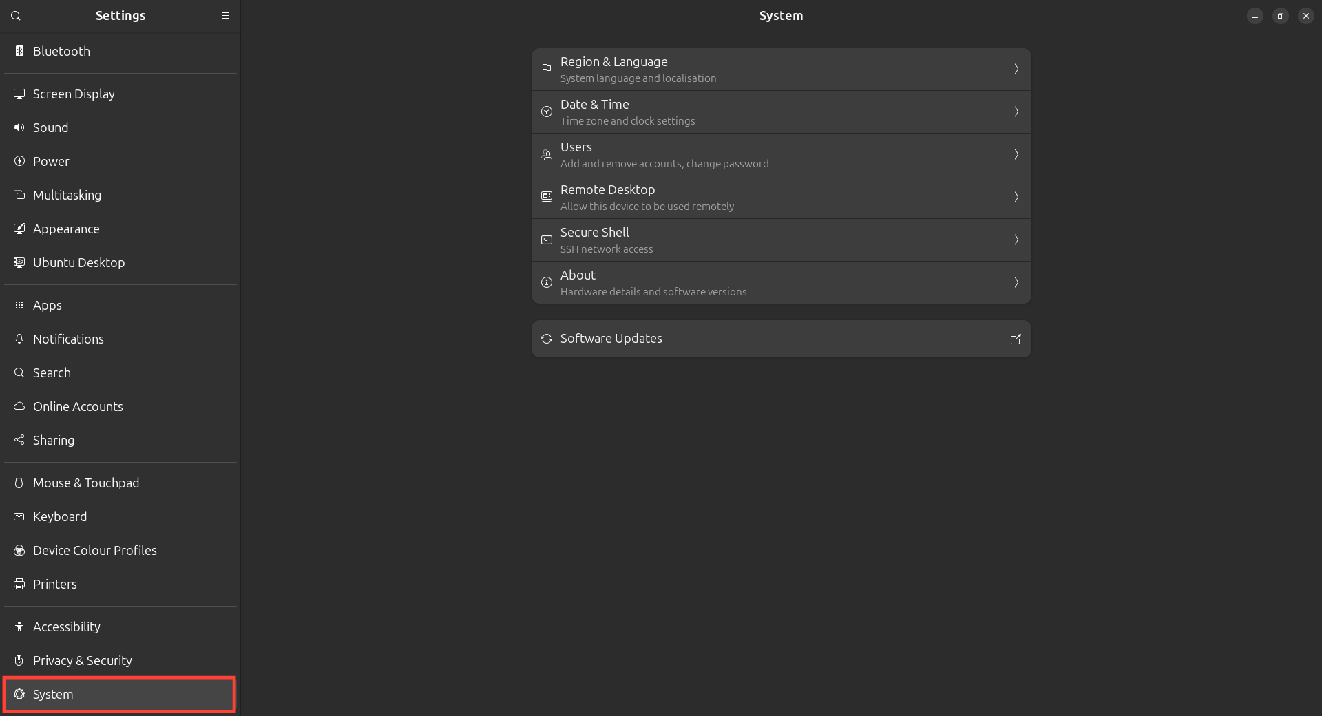 Step 2: Scroll down and select System.