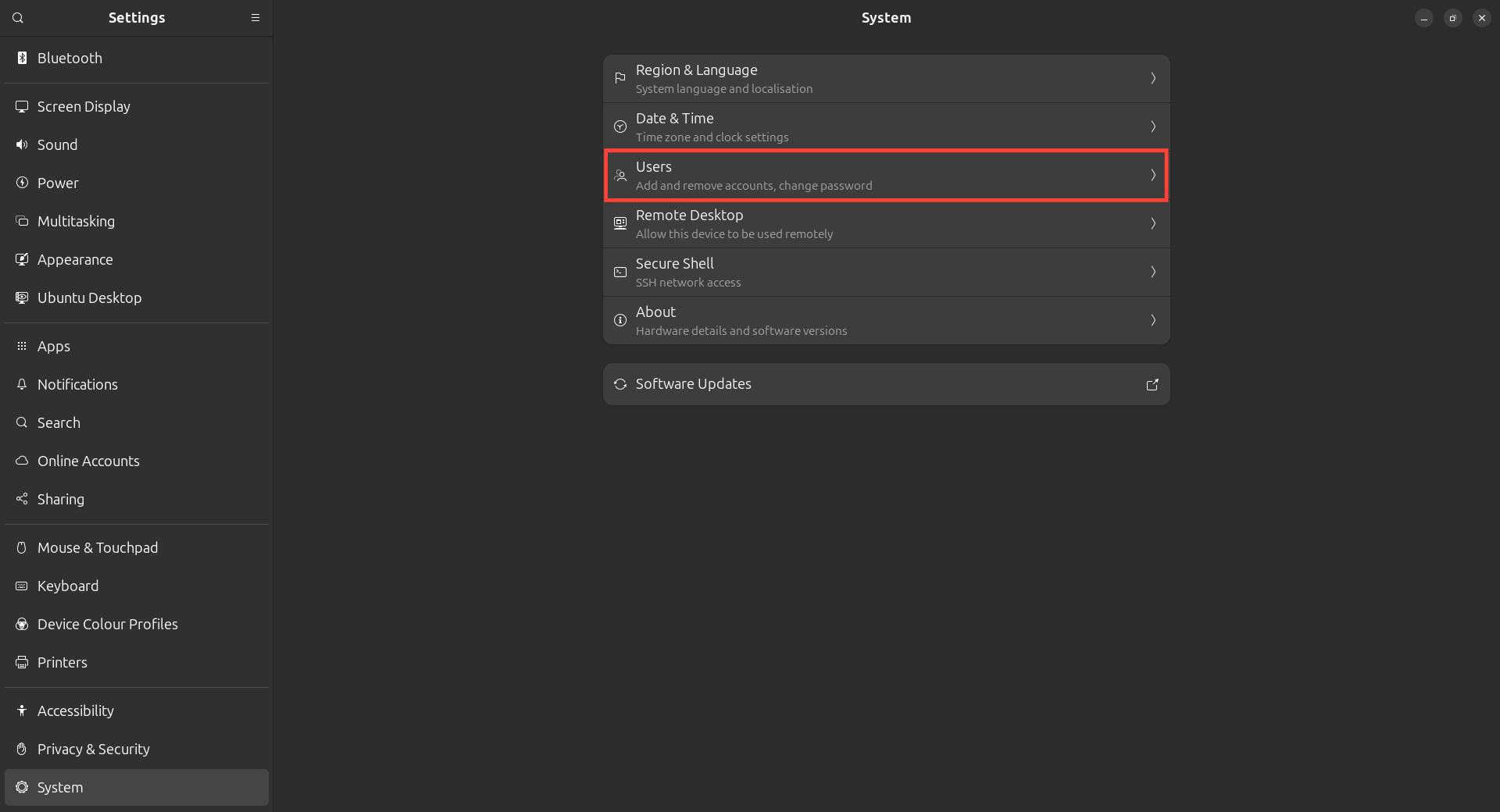 Step 3: On the right panel, select Users.
