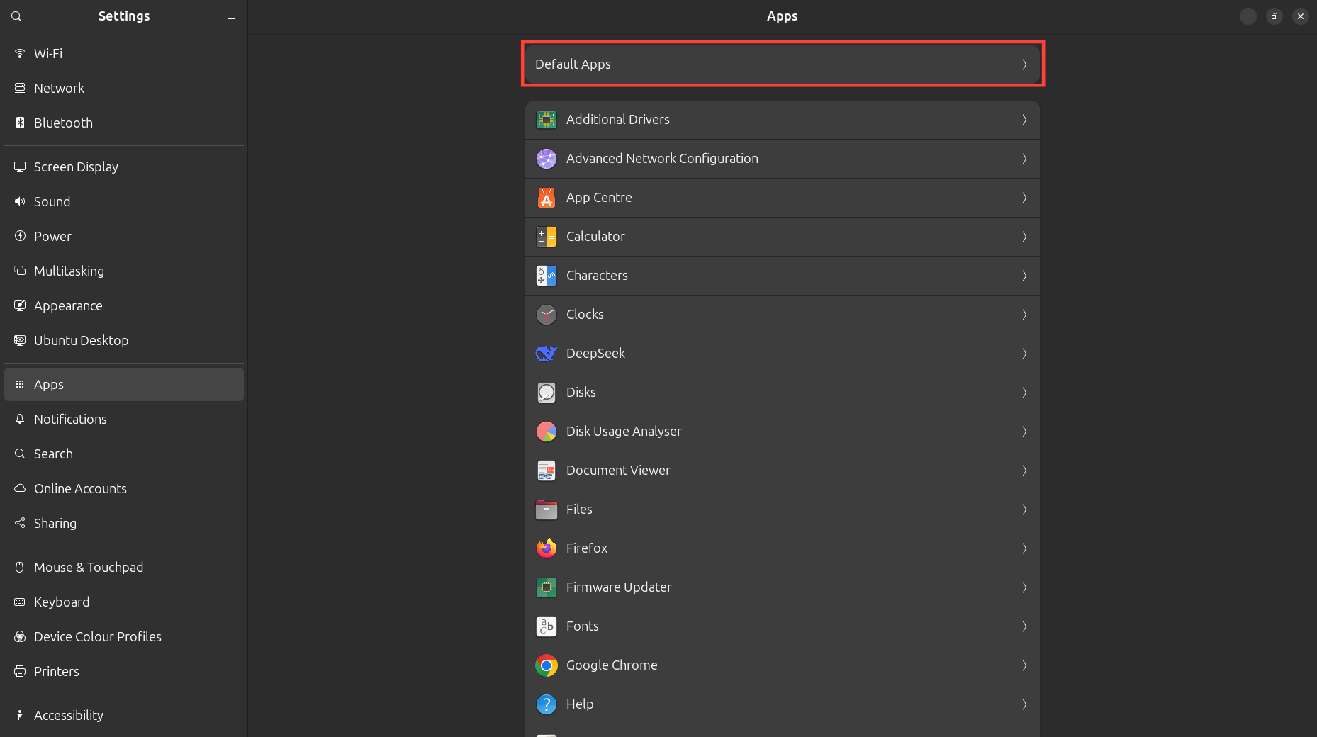 - Step 2: Click "Default Apps" from the right panel to expand the section.