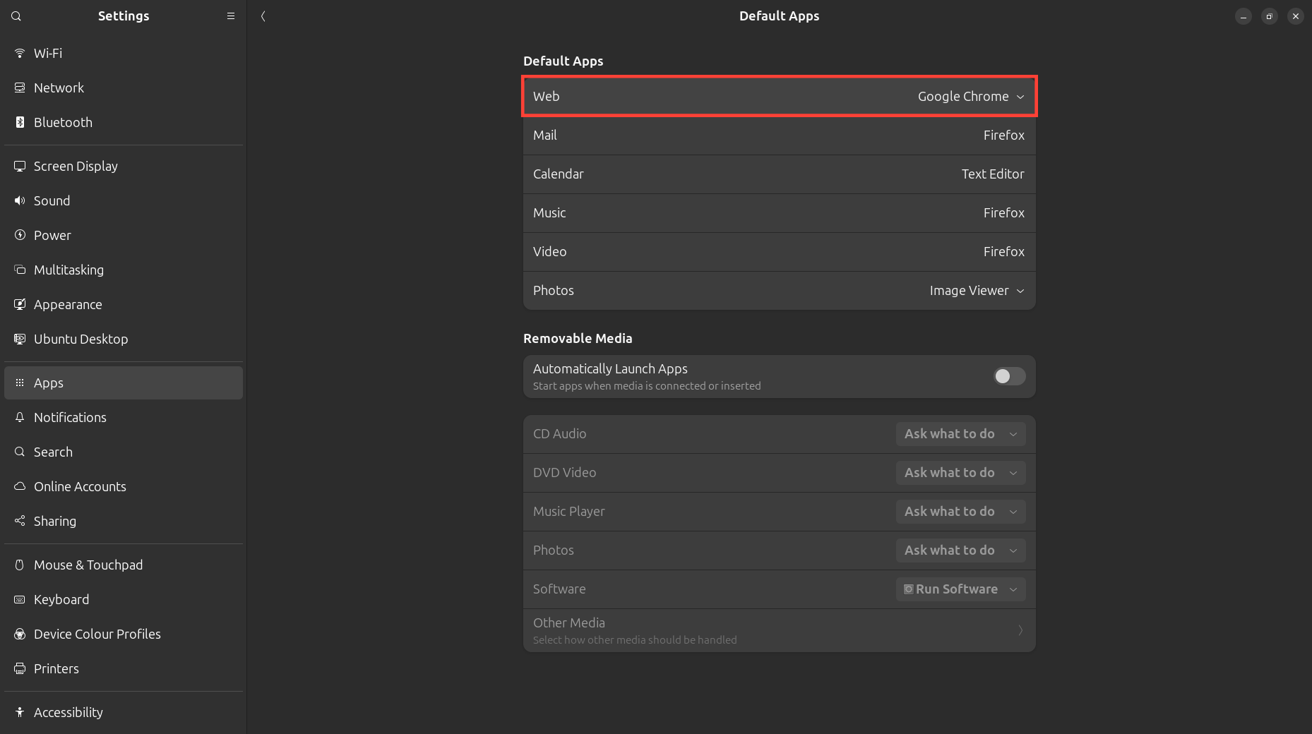 - Step 3: Under Default Apps, click on the Web dropdown menu and select your preferred browser App.