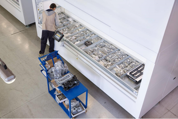 The VLM’s software tracks where each tray is located and organizes them in a way that makes sense for easy retrieval.