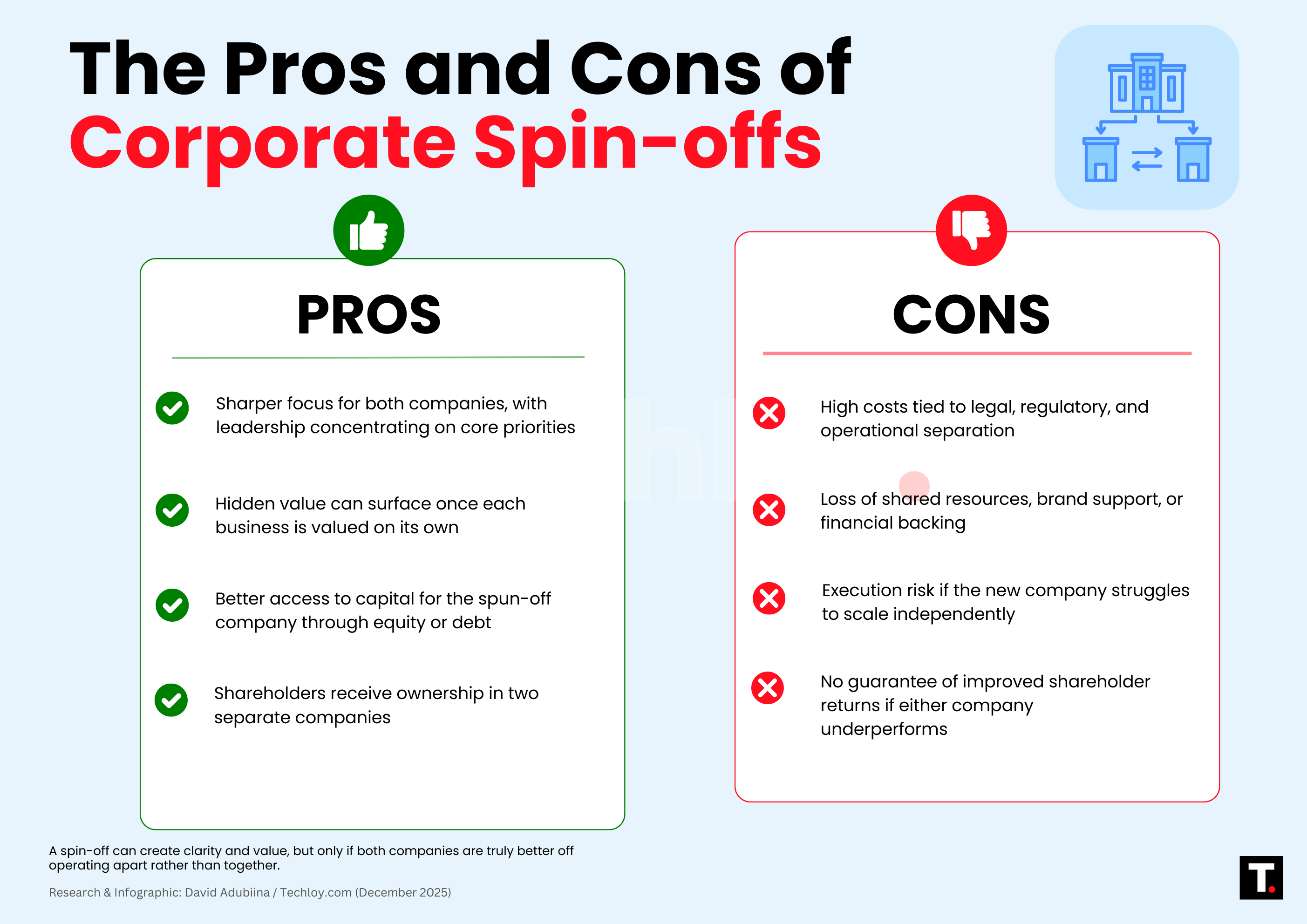 Pros and cons of corporate spin-offs