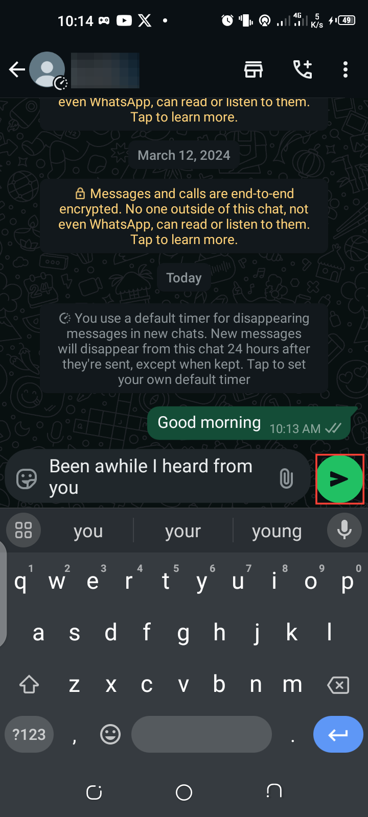 Step 3. Open the chat again to continue typing or editing your message. Once you're satisfied, hit the Send button.