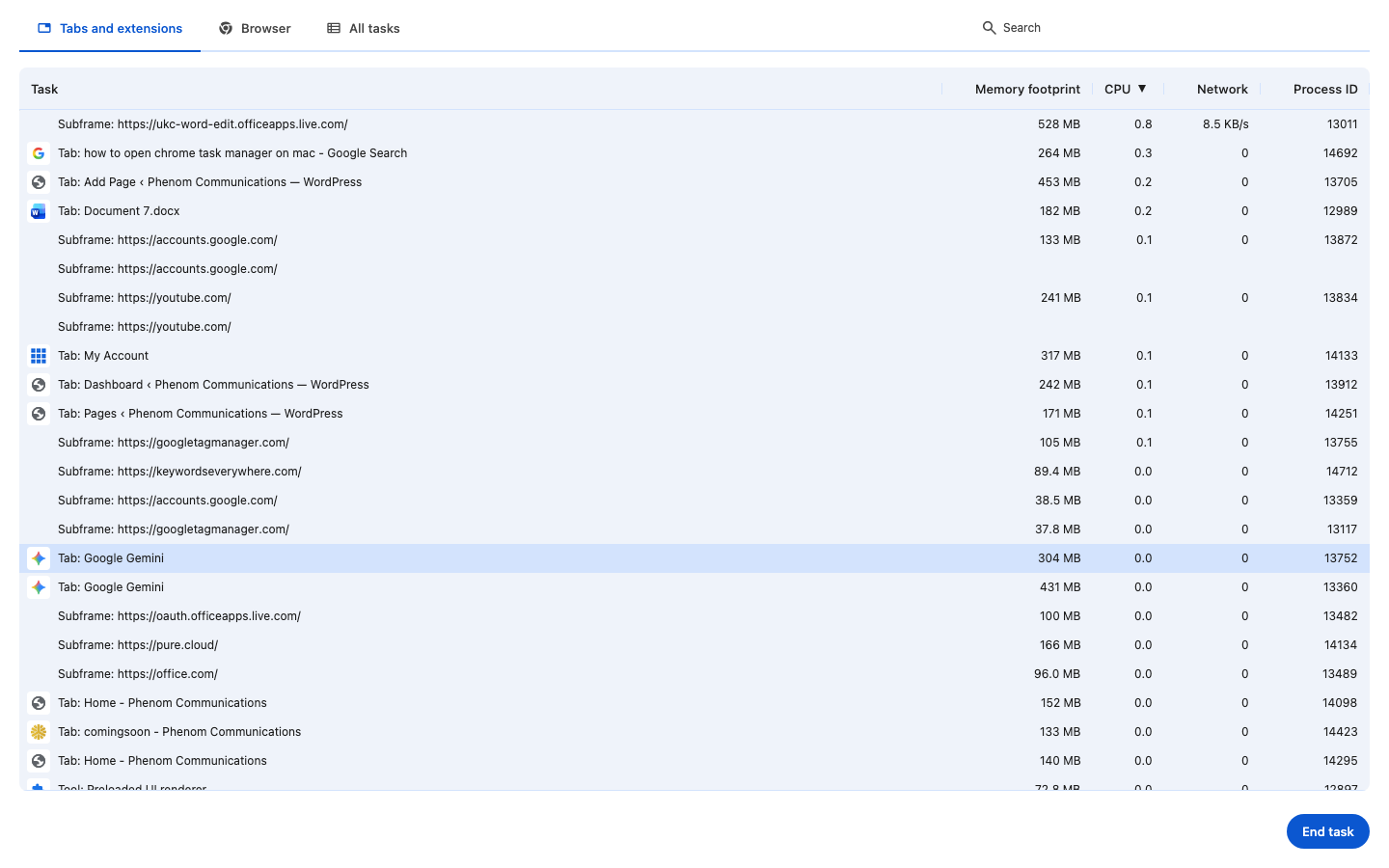 - If you see a simple extension (like a "ToDo List") using 300MB of RAM or 20% CPU, it is broken. Click it and hit End Process, then remove it from your browser.